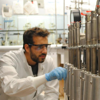 Checking fluorination bombs at the University of Maryland, College Park. Photo credit: D.L. Eldridge.